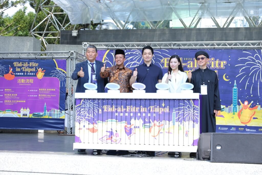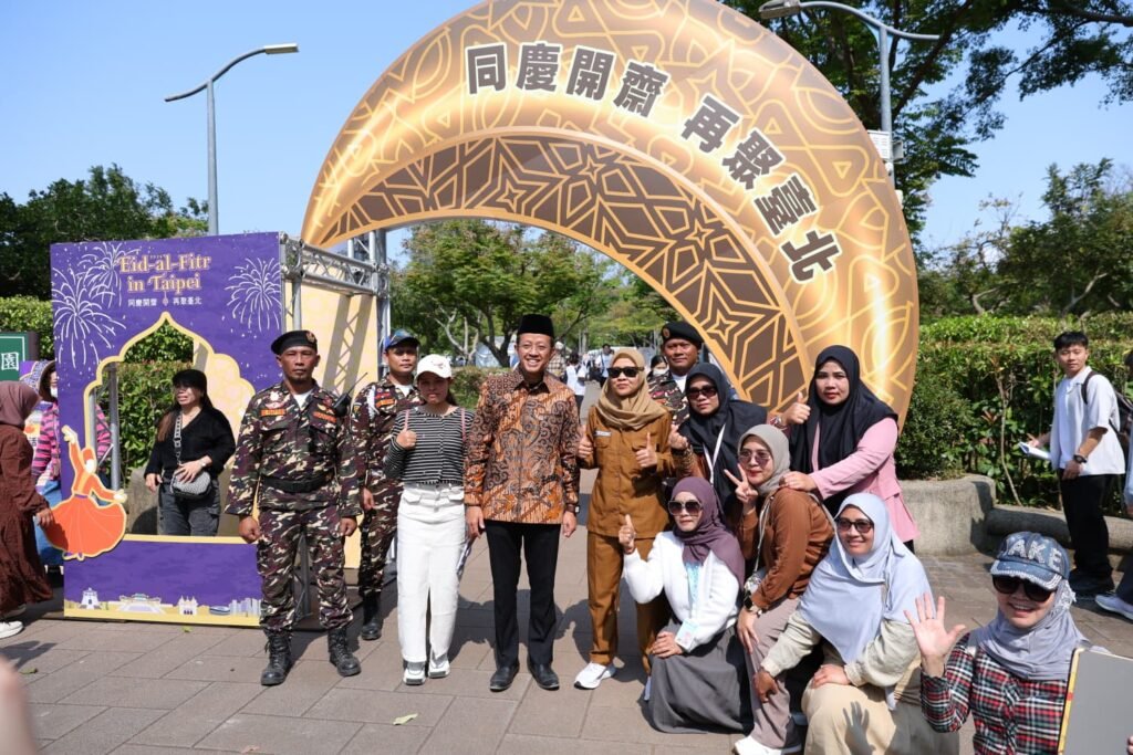 Taipei, Taiwan — Ribuan orang memadati Daan Forest Park, Taipei, pada Minggu dalam perayaan Idulfitri yang menandai berakhirnya bulan Ramadan. Acara tahunan tersebut menghadirkan beragam kegiatan, pertunjukan, serta kuliner halal yang menarik minat masyarakat dari berbagai latar belakang (22/3/26).